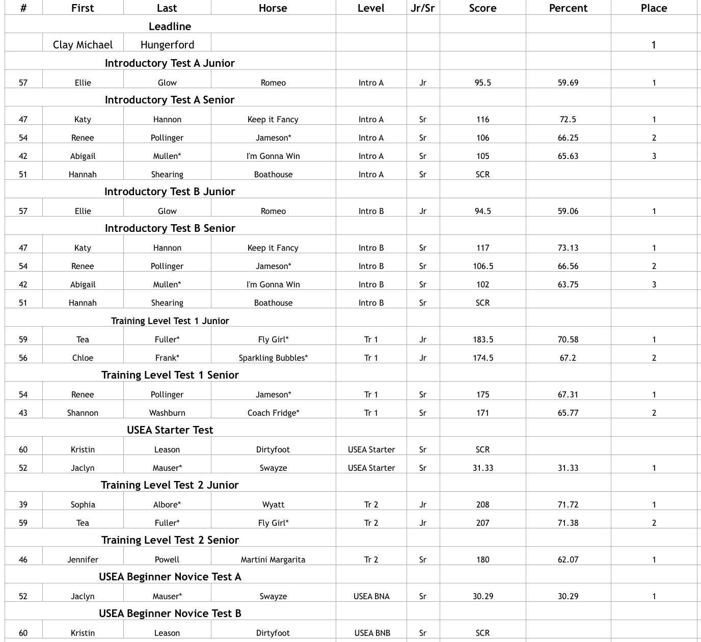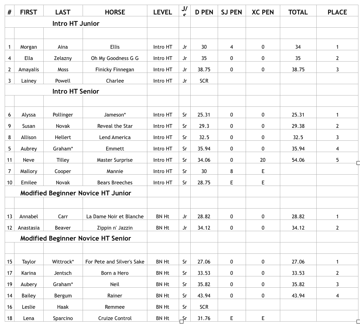 Horse Trials Results